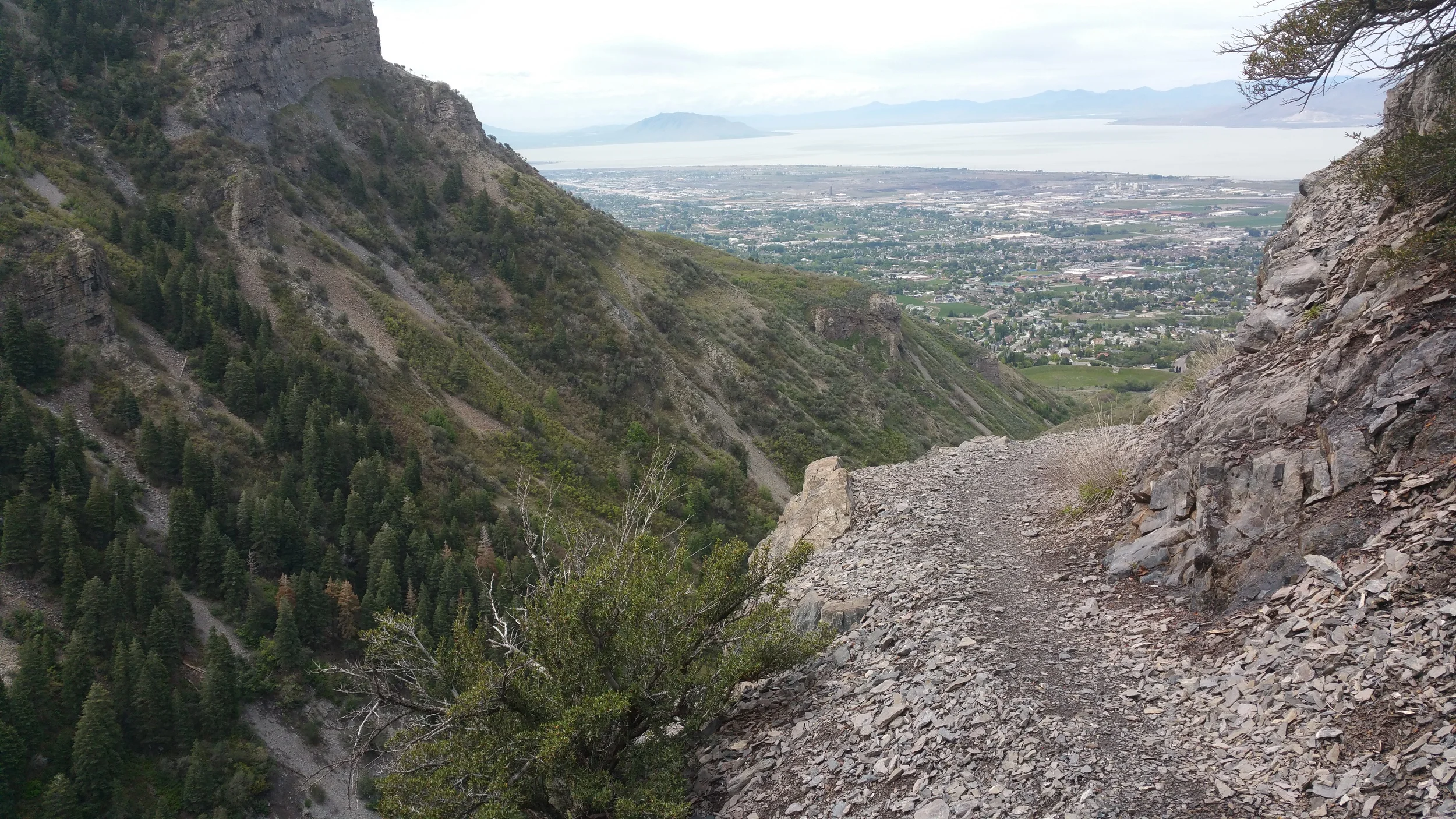 After the first set of switchbacks the incline didn’t exactly level off, but it did reduce enough that my heels started to touch the ground again. And now I was high enough to enjoy the view. This being springtime, the view was spectacular. And as I moved on, it just got better. The sound of rushing water was constant as snowmelt poured through the valley. Recent heavy rains added extra runoff, creating small streams and waterfalls at random intervals all along the trail. At one point, water actually diverted down the trail, forcing me to tromp through it in order to continue on. The crisp water actually felt good as it soaked through my shoes. I began to enjoy myself so much that I forgot that my leg muscles were about to rip through my skin.